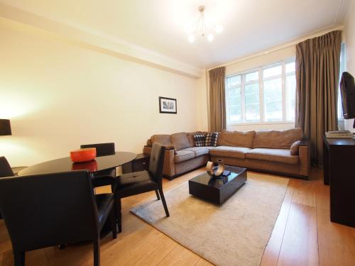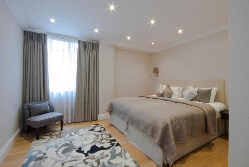 This apartment is located on the lower ground floor and features a living/dining area with premium audio-visual equipment and TV/DVD (with choice of satellite channels). The modern, fully-equipped kitchen includes a dishwasher and washing machine/dryer. The bedroom is fitted with a king-size bed, and the bathroom includes bath and power shower. |