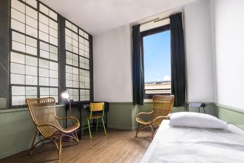 Bunk beds in a mixed dormitory room. All bunks include a light feature, a charging station with USB port, and under-bed lockers. Pillow, duvet and linen are supplied. Towels are available at a surcharge. |