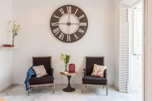 This bright apartment has a spacious living room with an Italian double sofa bed and a flat-screen TV, 2 private bathrooms, and a well-equipped kitchenette with a dishwasher and washing machine. The apartment has a large enclosed balcony overlooking Plaza de Pilatos square. |