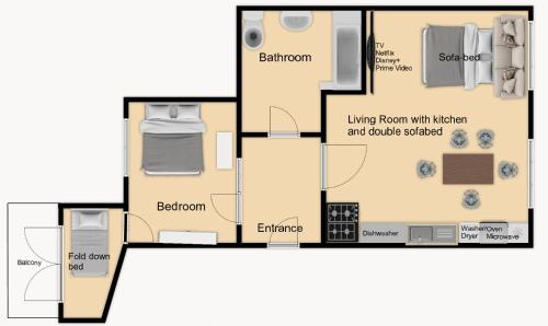 This apartment is comprised of 1 living room, 2 separate bedrooms and 1 bathroom with a bath and a shower. Meals can be prepared in the well-fitted kitchen, which is fitted with a stovetop, a refrigerator, a dishwasher and an oven. Featuring a balcony with garden views, this apartment also offers a washing machine and a TV with cable channels. The unit offers 3 beds. |