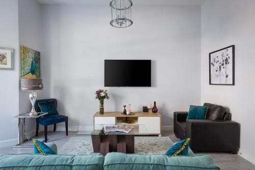 This spacious apartment is comprised of 1 living room, 2 separate bedrooms and 2 bathrooms with a walk-in shower and free toiletries. Guests can make meals in the kitchen that comes with a stovetop, a refrigerator, a dishwasher and kitchenware. The apartment offers a flat-screen TV with satellite channels, a washing machine, a tea and coffee maker, a seating area as well as city views. The unit offers 4 beds. |