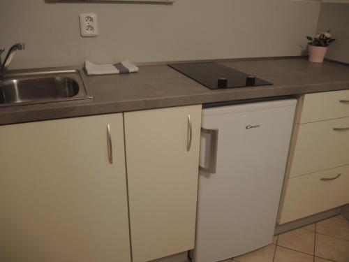 This studio features a kitchenette with a fridge, electric cooker and kettle. The bedroom offers a TV. |