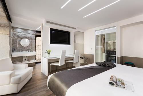 This suite has a seating area and air conditioning. |