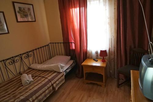 These simple rooms offer shared bathroom facilities. This room also features a TV. |