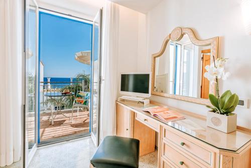 Offers a TV and a view of Maronti Bay from the balcony. It features Mediterranean-style decor and free Wi-Fi. |