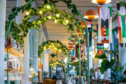Screens or physical barriers placed between staff and guests in appropriate areas
