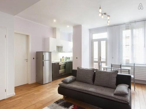This apartment includes a living room with a sofa bed, a flat-screen TV, an equipped kitchen with a dishwasher, and a bathroom fitted with a bath and a bidet. |