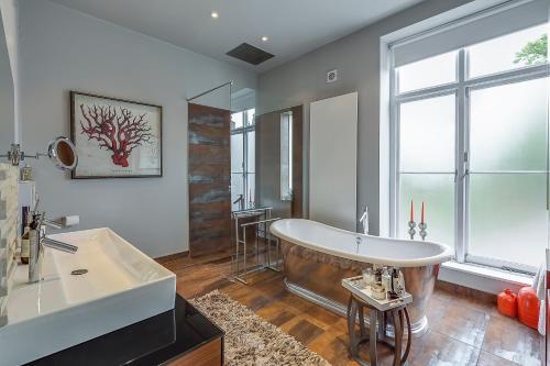 The spa bath is the standout feature of this holiday home. This holiday home features 1 living room, 5 separate bedrooms and 3 bathrooms with a bath or a shower and free toiletries. Meals can be prepared in the kitchen, which features a stovetop, a refrigerator, a dishwasher and kitchenware. Boasting a terrace with garden views, this holiday home also features a washing machine and a TV. The unit has 5 beds. |